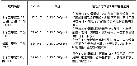 表一. RoHS 2.0新增4項(xiàng)鄰苯二甲酸酯物質(zhì)清單