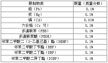 2015年6月4日,歐盟官方公報(bào)(OJ)發(fā)布RoHS2.0修訂指令(EU)2015/863,正式將DEHP、DBP、BBP、DIBP列入附錄Ⅱ限制物質(zhì)清單中,至此附錄Ⅱ共有十項(xiàng)強(qiáng)制管控物質(zhì),詳見下表: