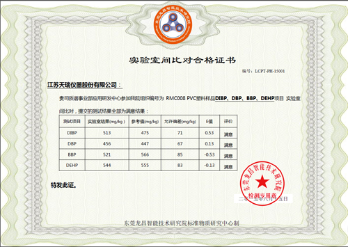 附錄1:實(shí)驗(yàn)室間比對合格證書(塑化劑)