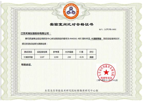 附錄2:實(shí)驗(yàn)室間比對合格證書(多溴聯(lián)苯醚)