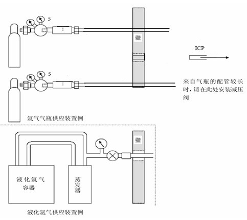氬氣瓶到儀器的距離應(yīng)小于 5m,配管如下圖所示,要注意氬氣瓶的妥善放置,防止傾倒