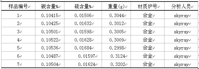 試驗數據表明:高頻紅外碳硫儀CS-168型測試有色金屬及合金中的碳硫含量,結果準確,且重復性好,簡單,快速??梢詮V泛的應用在各種各樣的合金樣品中。