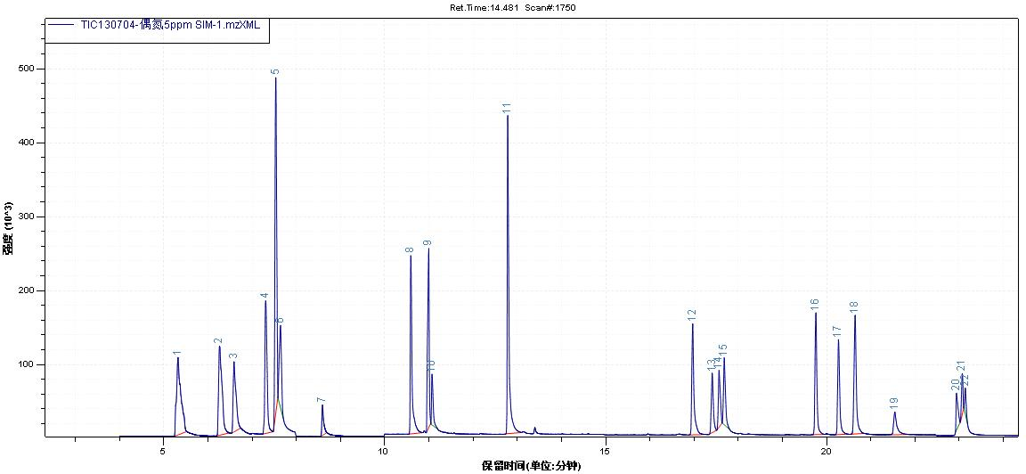 柱箱升溫程序:60℃(2min)20℃/min 130℃(1min)10℃/min 200℃(2min)5℃/min 250℃(3min)