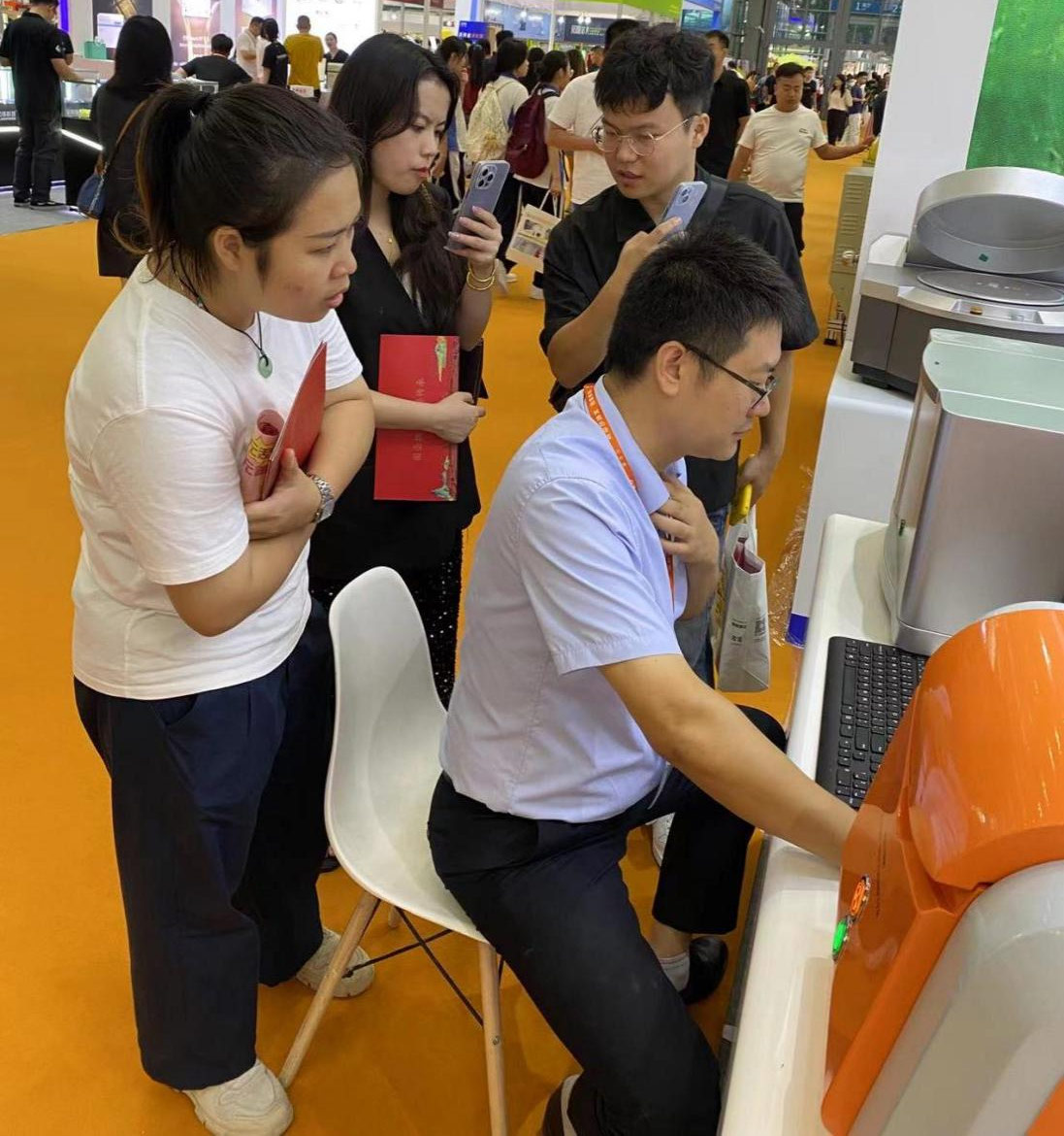 天瑞儀器董事長劉召貴博士親臨展會(huì)現(xiàn)場(左一)