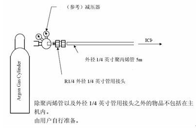 氬氣瓶到儀器的距離應(yīng)小于 5m,配管如下圖所示,要注意氬氣瓶的妥善放置,防止傾倒