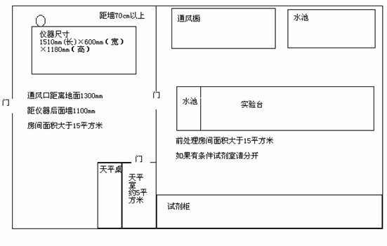 ICP-2000型ICP掃描光譜儀的外形尺寸為1510mm(長(zhǎng))×600mm(寬)×1180mm(高),重量為300kg ,發(fā)貨時(shí)四角裝有減震器,儀器運(yùn)到用戶后卸下減震器,換上螺絲桿,當(dāng)儀器選好位置后,將螺絲桿旋出使四角輪懸空,調(diào)節(jié)螺絲桿使儀器至水平,為保持儀器性能穩(wěn)定及便于維護(hù),ICP-2000 周圍必須留出供維護(hù)人員維護(hù)儀器所需的空間(安裝臺(tái)距后面墻面至少70cm)