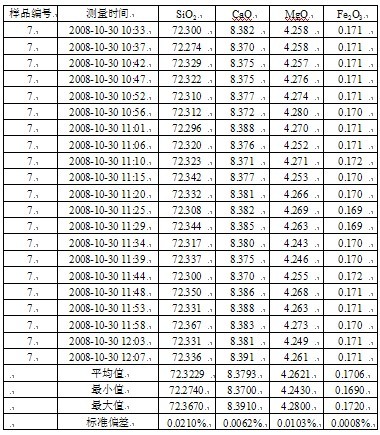 標(biāo)樣:建材院玻璃所自制標(biāo)樣(僅有常規(guī)測量的四種元素)
