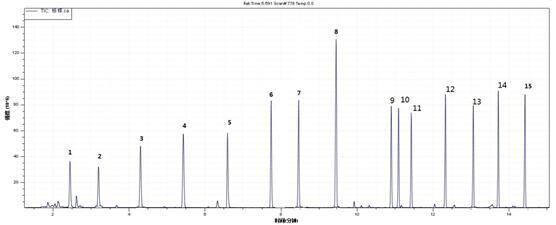 圖11 . TVOC標(biāo)準(zhǔn)溶液氣相色譜圖