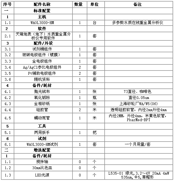 綜上所述,有色金屬礦業(yè)對(duì)環(huán)境的重金屬污染包括了大氣、水體和土壤三個(gè)方面。因此,為了全面監(jiān)測(cè)有色金屬礦業(yè)環(huán)境重金屬監(jiān)測(cè)系統(tǒng)包括:大氣、水體和土壤三個(gè)部分,選用監(jiān)測(cè)儀器如下表: